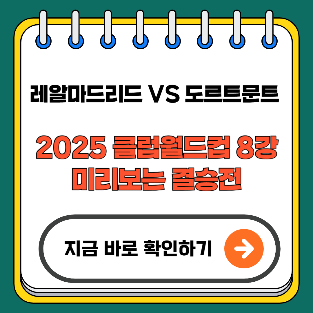 2025 FIFA 클럽월드컵 8강 일정과 레알 마드리드 vs 도르트문트 경기 시간, 장소, 중계 채널까지 한 번에 확인할 수 있는 최고의 안내글입니다. 경기 준비는 이 글 하나면 충분합니다.