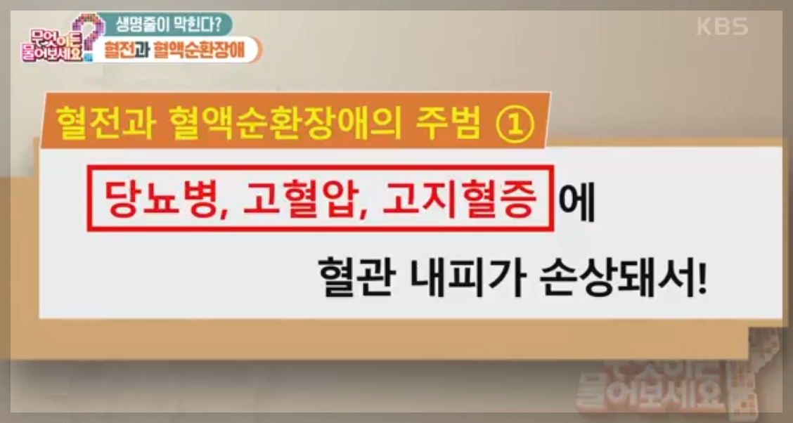 인기 있는 오전 프로그램 무엇이든 물어보세요 6/230(월) <닥터의 경고> 생명줄이 막힌다? 혈전과 혈액순환장애 편에서도 혈전과 혈액순환장애의 위험성을 경고하고 있습니다. 특히 50대 이상이시라면 이번 글을 끝까지 확인하시기 바랍니다.