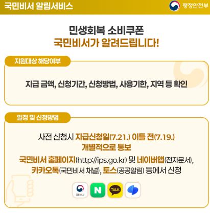 👉 지금 바로 국민비서 알림 확인 → 신청 → 사용 지역과 업종 파악 → 최대 혜택 누리세요!