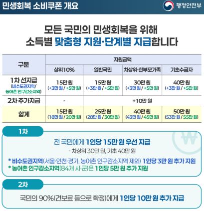 - 전 국민 대상, 단 상위 소득 10%는 2차 제외.