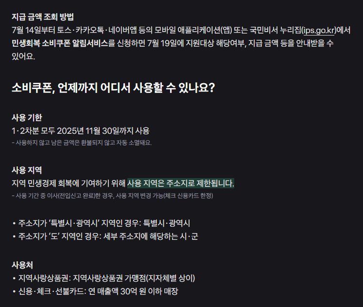 - 소비쿠폰은 2025년 11월 30일까지 사용해야 하며, 미사용 금액은 자동 소멸됩니다.