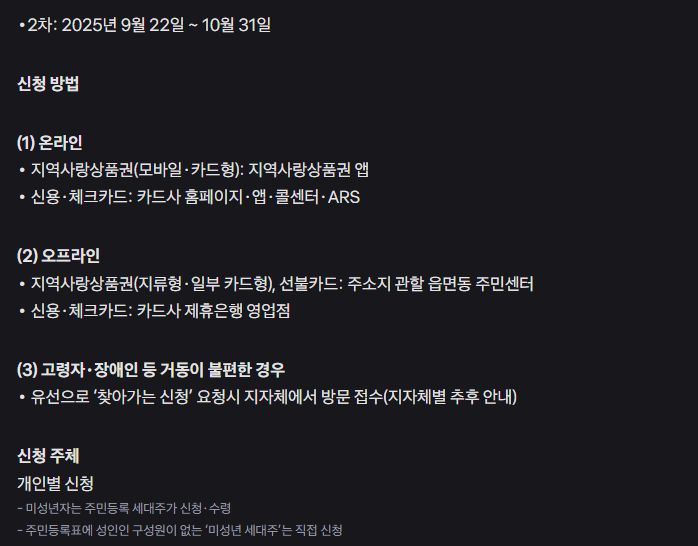 - 신청은 1인 1회만 가능하며, 미성년자는 세대주가 대리 신청해야 합니다.