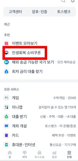 - ‘민생회복 소비쿠폰 신청’ 배너 선택