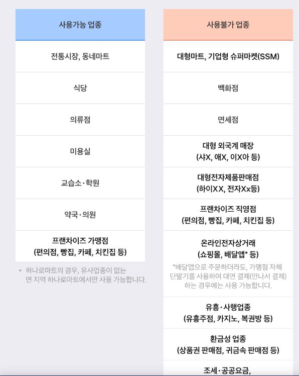 | 사용처 | 연매출 30억 원 이하 소상공인 매장 |