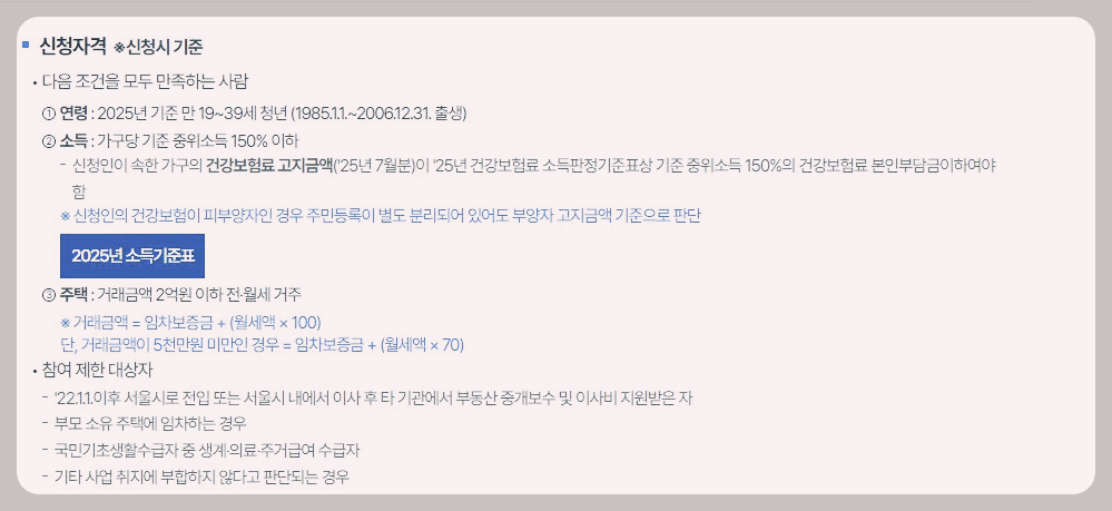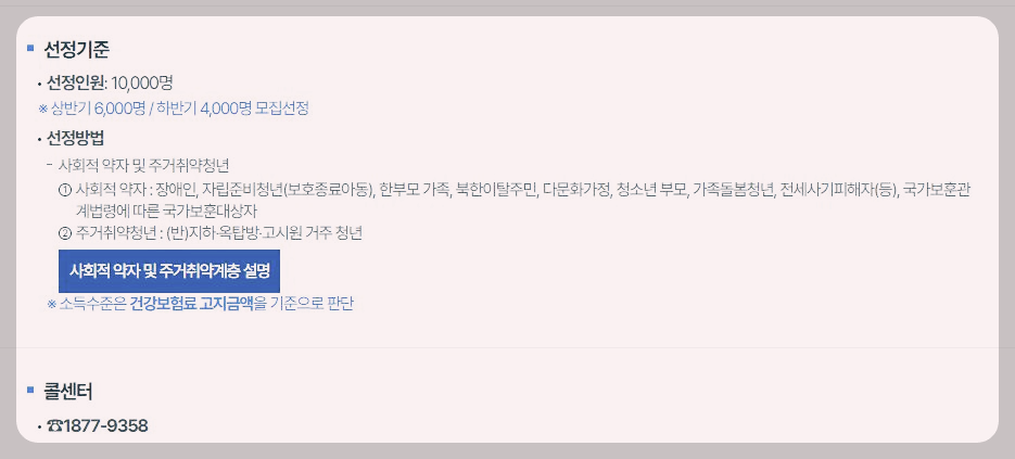 ✅ 우선 선발: 사회적 약자 및 주거취약 청년 중심, 이후 소득 낮은 순으로