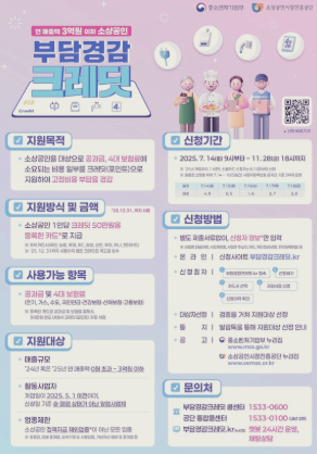 - 소상공인24 사이트 접속 → 로그인 → “부담경감 크레딧” 신청 배너 클릭