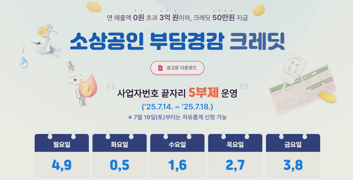 2025년 정부는 ‘부담경감 크레딧’을 통해 연매출 3억 이하 소상공인에게