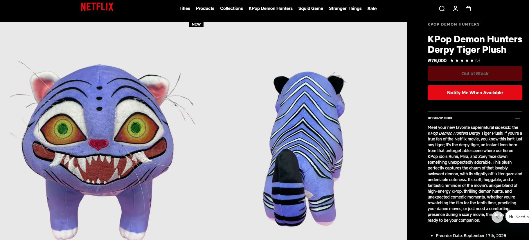 팬이시라면 넷플릭스 공식 굿즈샵에서 호랑이 더피와 여러 가지 굿즈 상품들을 살펴보세요~