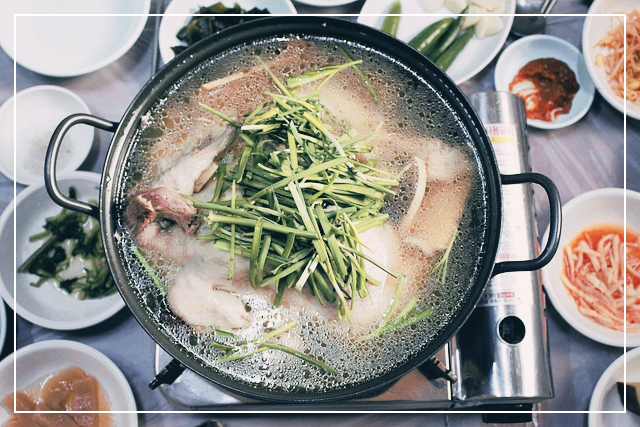 닭고기에 인삼·대추·마늘 등을 넣고 푹 끓인 영양식.
