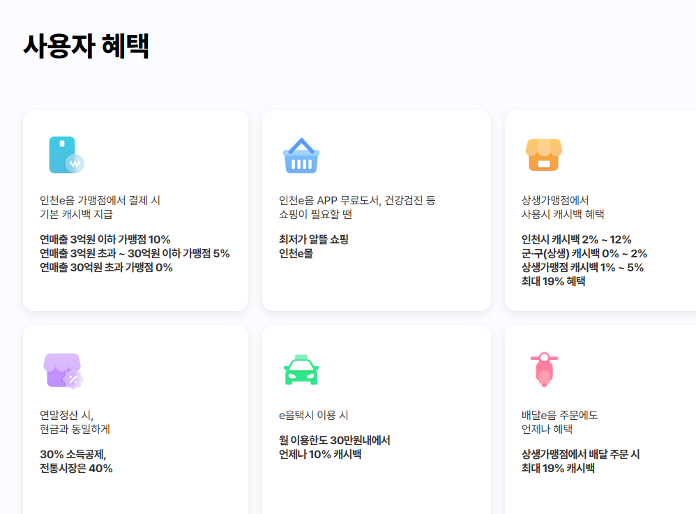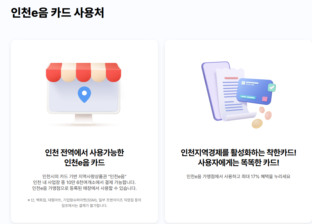 - 사용처: 인천 내 소상공인 매장, e음카드 가맹점