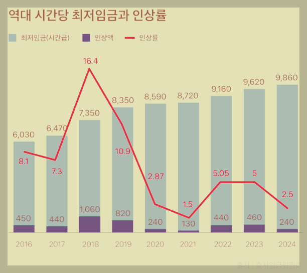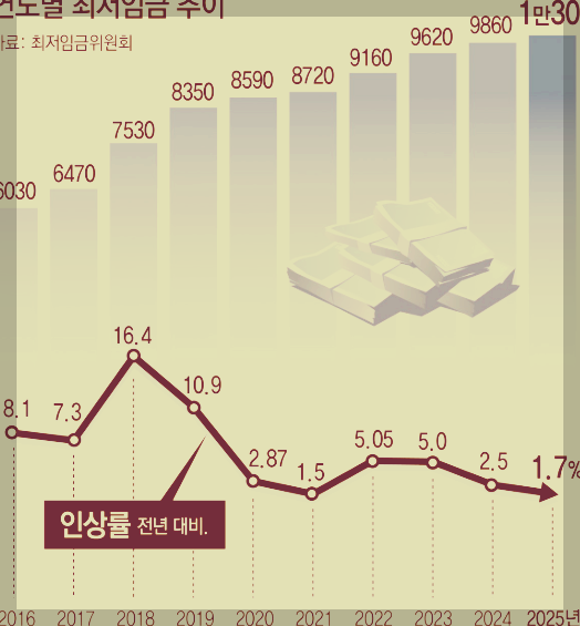 - 2025년 실제: 시급 10,030원 (2.5% 인상)