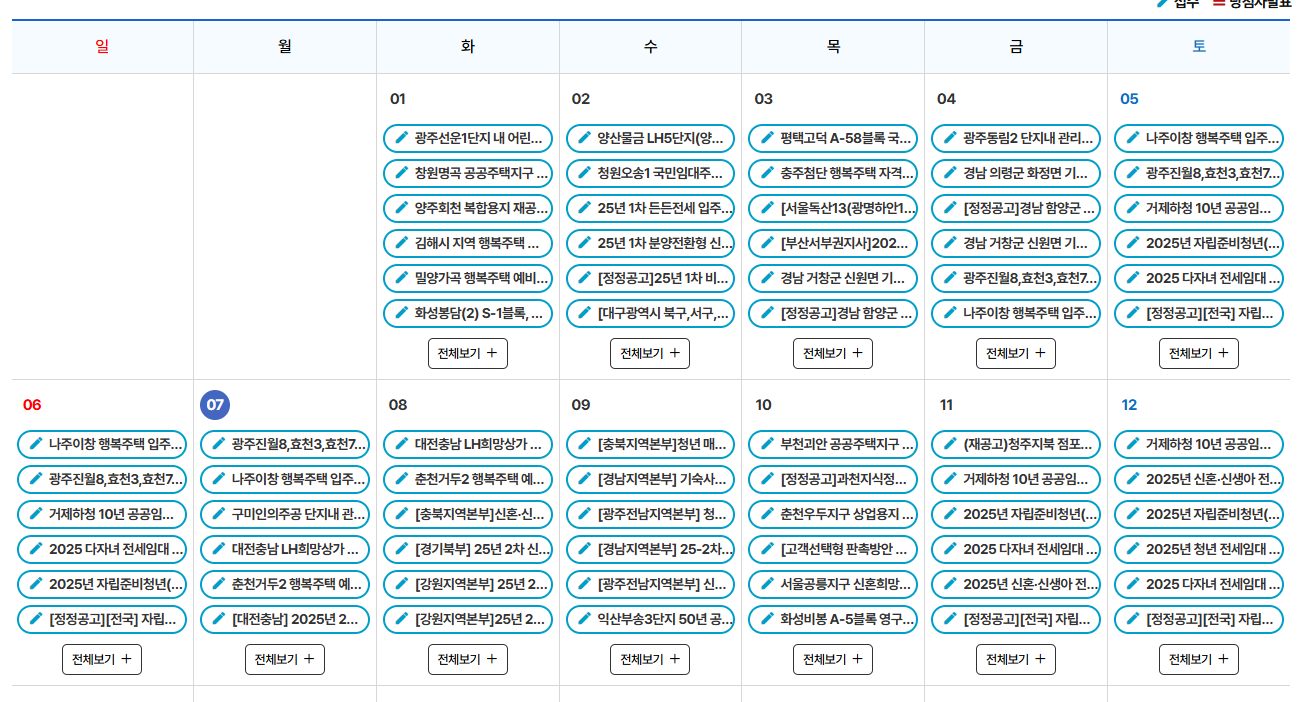 - 스마트 기능: ‘나의 자격 자동 분석’, ‘모집공고 알림’, ‘청약 캘린더’ 제공.