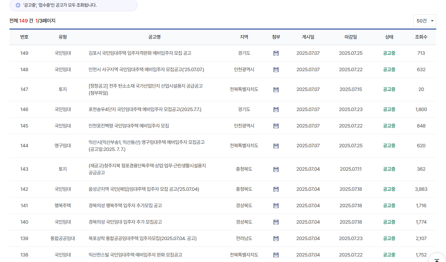 • 통합 플랫폼: 공공임대(국민·행복·영구), 전세임대, 청년·신혼·다자녀 특공 등 다양한 유형을 한 곳에서!